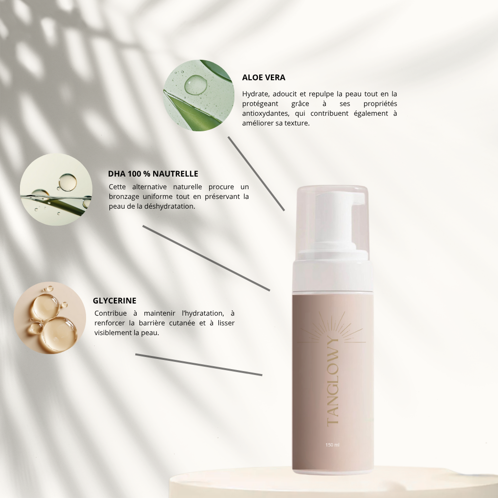 Que vous ayez une peau claire, rousse ou difficile à bronzer, TanGlowy est conçu pour répondre à vos besoins spécifiques. Finies les frustrations, profitez d'un teint hâlé et homègene, quelle que soit votre carnation.